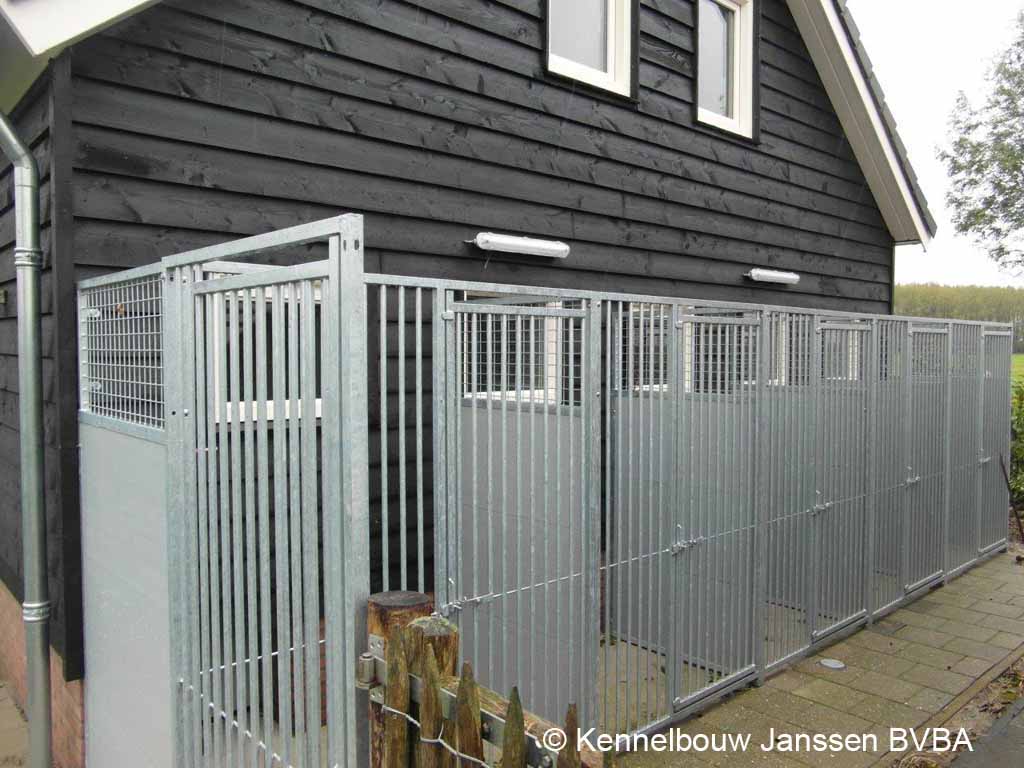 Kennel- en Metaalbouw Janssen BVBA is een familiebedrijf met meer dan 30 jaar ervaring in het ontwerp en de constructie van kennels en andere metaalconstructies. Wij staan garant voor kwaliteit van onze producten. U kan bij ons terecht voor het ontwerpen van uw kennels en hondenhokken maar ook voor kennelpanelen, puppyrennen, vlonders, kattenrennen, volières en andere toebehoren. Hieronder ziet u een aantal voorbeelden van onze kennels, hondenhokken, puppyrennen, kattenunits, volières, vlonder en schuiven. Klik op een foto om te vergroten en op de vergrote foto om te bladeren door de fotoreeks